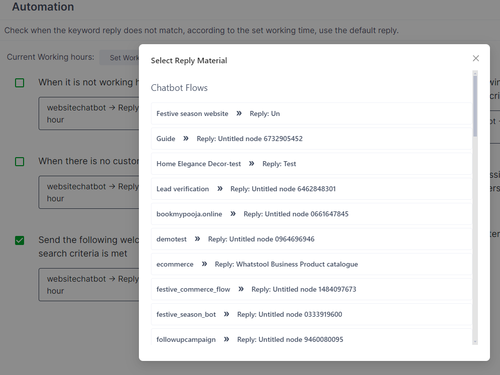 2. Select the Bot based on the scenarios.