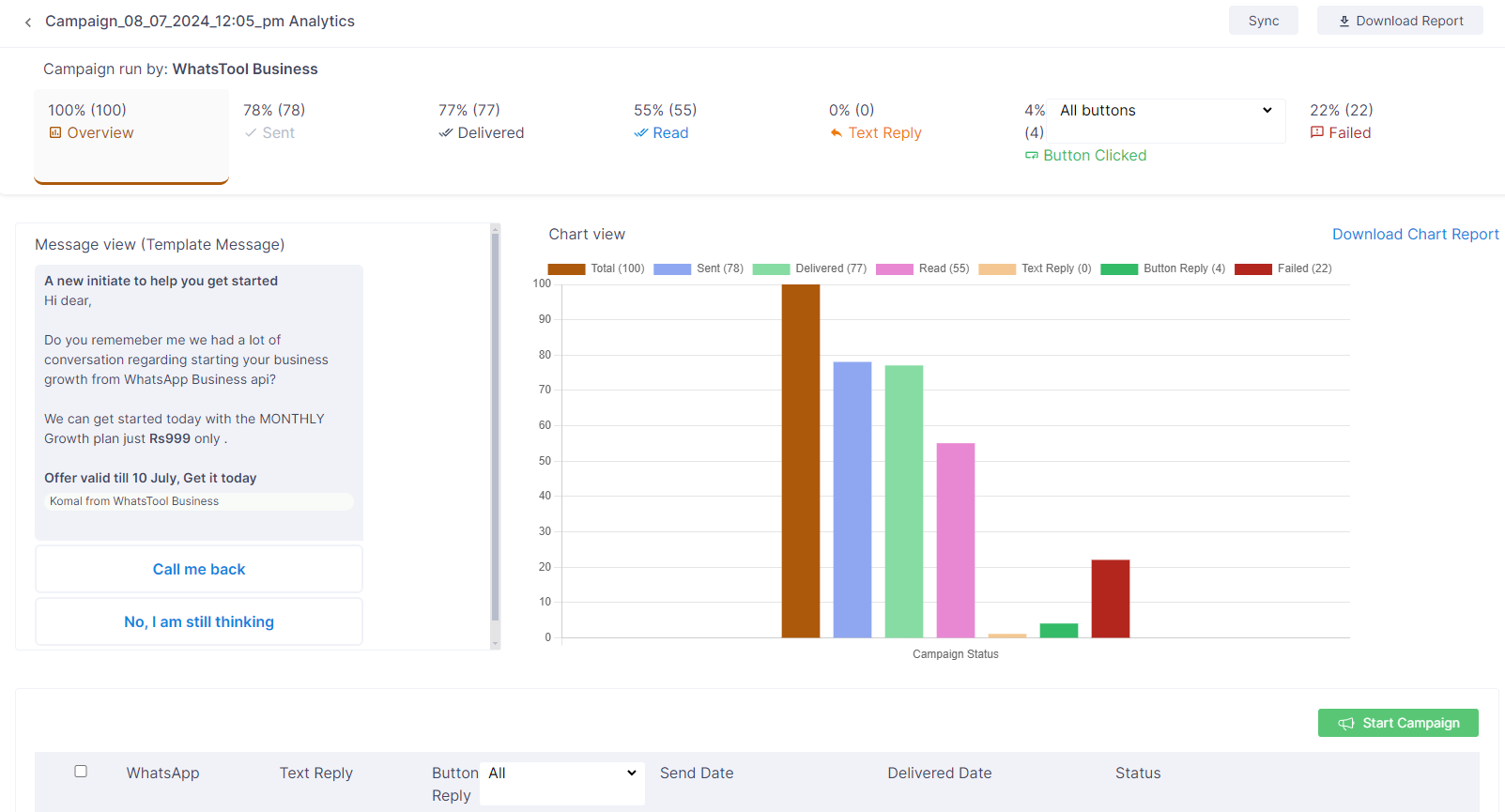 **Broadcast Report** provide the data summary generated after sending out a broadcast, providing insights into its performance.